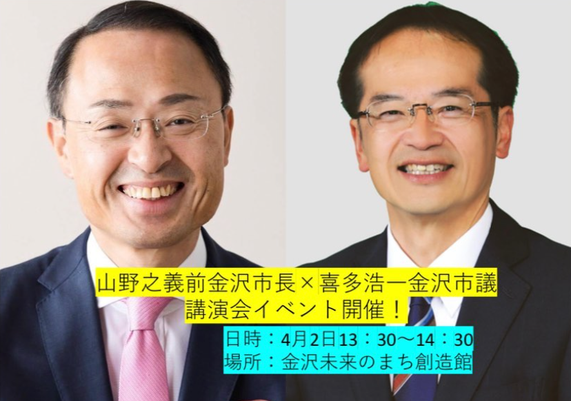 緊急開催!山野之義前金沢市長×喜多浩一金沢市議「働く」とは講演会を開催!